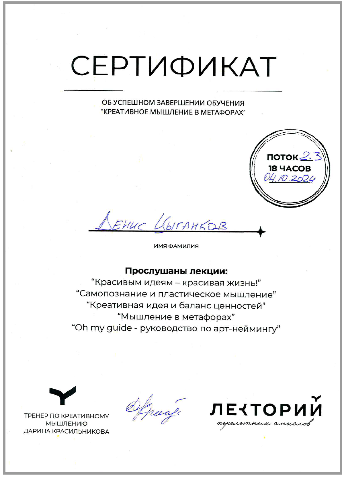 Я обожаю учиться, это мой образ жизни. Каждый новый курс, каждая книга открывает двери в неизведанные миры. Теория — это основа, на которой строится креативность. Чем больше знаний, тем более оригинальные идеи можно генерировать.